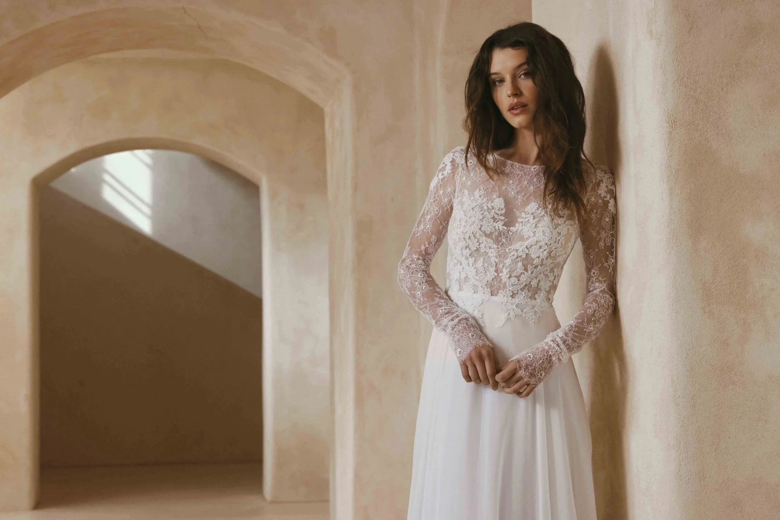 Anna Kara blends modern sophistication with whispers of ancient folklore. Think flowing silhouettes, delicate lace, and intricate embroidery that feels both romantic and undone in the best way.